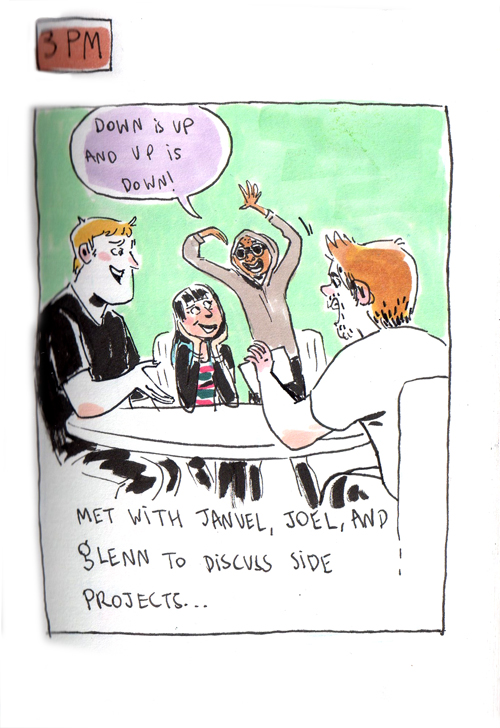 I'm posting this pretty darn late, but Friday was Hourly Comics Day! I decided to draw each hour as a page in my new sketchbook (and I finally got around to scanning them all):